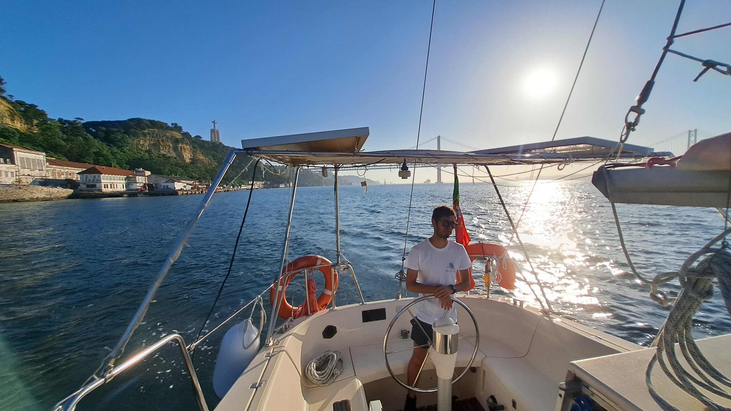 Navegar pelo Tejo em um tour privado de barco à vela é uma oportunidade perfeita para relaxar, mergulhar e aproveitar vistas incríveis